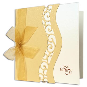 Zdobione ażurowym wycięciem techniką laserową oraz szyfonową wstążką.