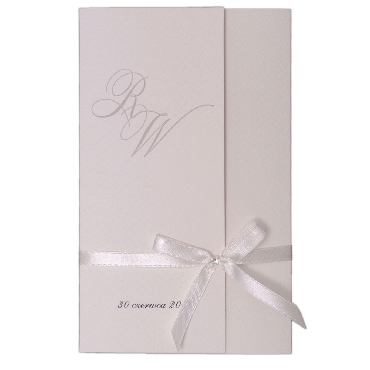 Zdobione wstążką satynowa w kolorze ecru oraz akrylową cyrkonią.