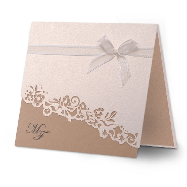 Zdobione wyciętym szlaczkiem oraz szyfonową wstążką w kolorze ecru.